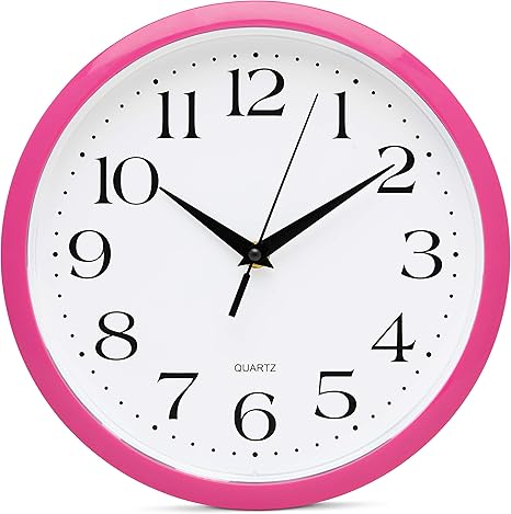 Bernhard Products Pink Wall Clock 10 Inch Silent Non Ticking Battery Operated Quality Quartz Round Easy to Read Home/Office/Kitchen/Nursery/Girl's Bedroom/Classroom/Kids Playroom/School Clock