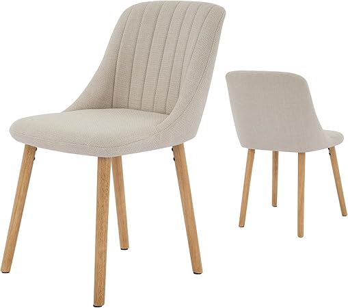 Dining Chairs Set of 2, Modern Fabric Upholstered Kitchen Side Chairs, Curved Backrest Dining Chairs with Oak Legs, Armless Dining Chair for Dining Room(Beige)