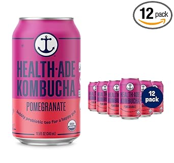 Health-Ade Pomegranate Blueberry Kombucha, Organic Drink, 12-Pack (11.5 Fl Oz Cans) - Fermented Tea with Probiotics, Detoxifying Acids, Supports Gut Health - Non-GMO, Vegan, Gluten-Free