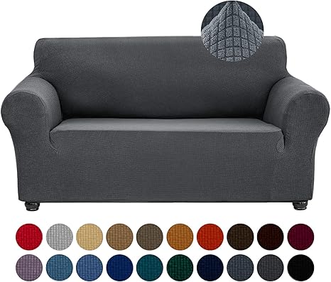 Joccun Stretch Loveseat Couch Cover Slipcover, 1-Piece Sofa Cover for 2 Cushion Couch Spandex Jacquard Washable Furniture Protector Cover for Living Room, Kids, Petsä__Loveseat, Grayä__
