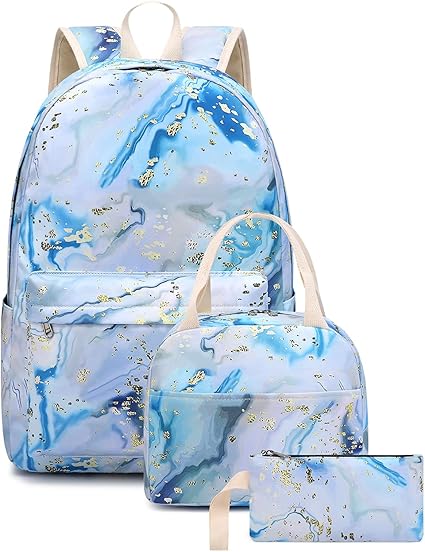 Bluboon Teen Girls School Backpack Kids Bookbag Set with Lunch Box Pencil Case Travel Laptop Backpack Casual Daypacks (Blue-white)