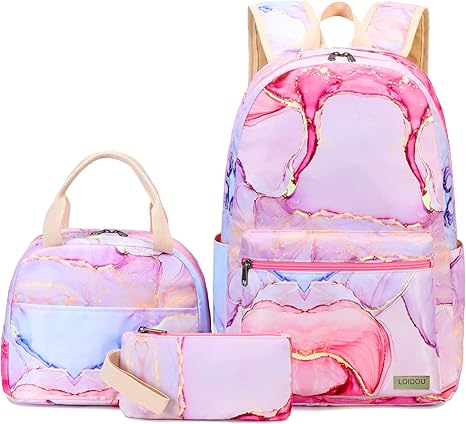 LOIDOU Backpack for Teen Girls Bookbags School Backpack with Lunch Box and Pencil Case 3 in 1 School Bags Set