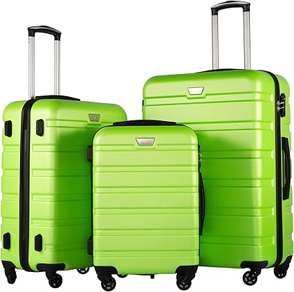 Coolife Luggage 3 Piece Set Suitcase Spinner Hardshell Lightweight TSA Lock (apple green2)