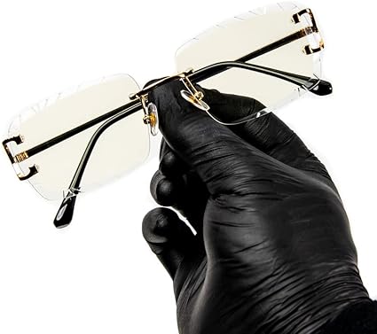 Rimless Gold Wire Frame Rectangular Unisex Luxury Trendy Old School Retro 90's Frameless Gem Cut Clear Lens Hip Hop Diamond Cut Eye Glasses For Men Women
