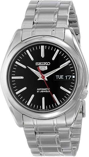 SEIKO SNKL45 Automatic Watch for Men 5-7S Collection - Striking Black Dial with Luminous Hands, Day/Date Calendar, Stainless Steel Case & Bracelet