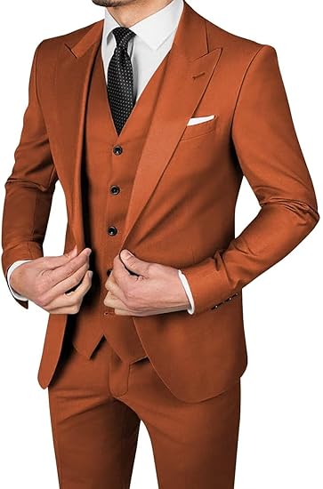 HUUTOE Mens 3 Piece Suits Slim Fit Peak Lapel One Button Blazer Wedding Business Prom Suit Jacket Vest and Pants Tuxedo Set