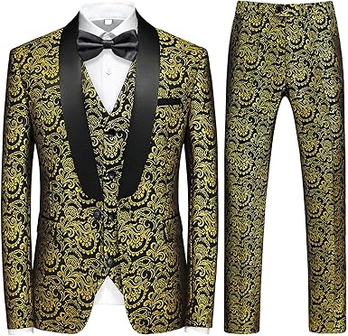 KUDORO Mens Suits Slim Fit 3 Piece Tuxedo Suit for Men Shawl Collar Dinner Party Prom Dress Tux Jacket Vest Pants Set