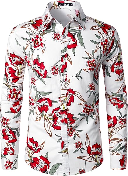 ZEROYAA Men's Hipster Floral Printed Long Sleeve Cotton Casual Button Down Dress Shirts