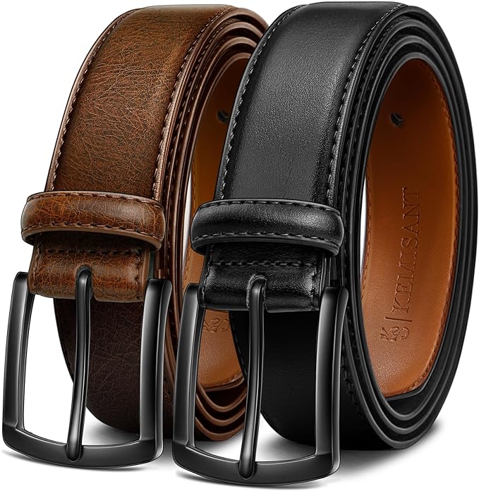 KEMISANT Men Belt 2Pack ‰ÛÒ Genuine Leather Belt for Men Dress Casual Golf Jeans 1 3/8"
