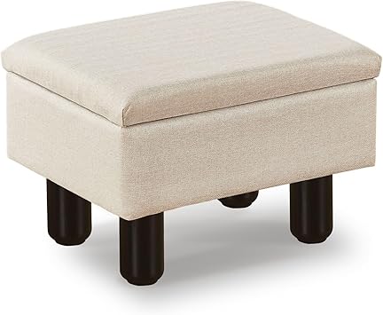 Mxfurhawa Ottoman Foot Stool with Storage Modern Small Foot Rest Step Stool Linen Rectangular Footstool Ottomans with Solid Wood Legs Under Desk for Makeup Room Living Room Bedroom (Beige)