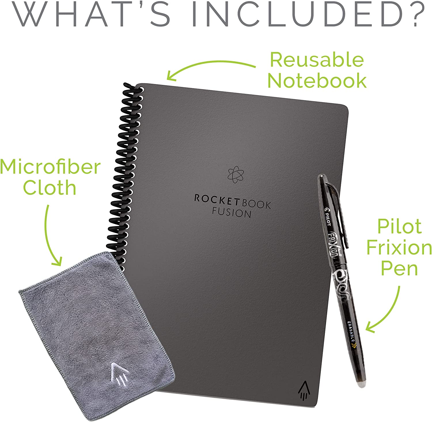 • Includes 1 Rocketbook Fusion Executive Size (6" x 8.8") Notebook, 1 Pilot Frixion Pen, and 1 Microfiber Cloth