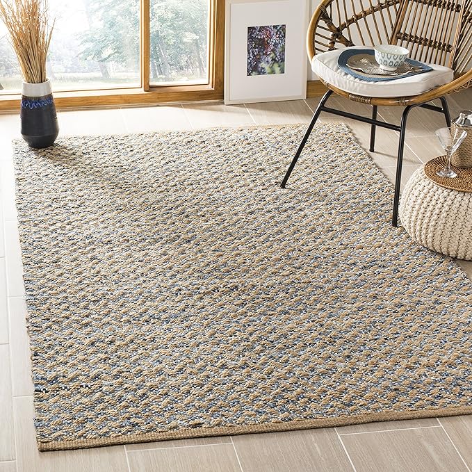 SAFAVIEH Cape Cod Collection Area Rug - 6' x 9', Blue & Natural, Handmade Boho Braided Jute, Ideal for High Traffic Areas in Living Room, Bedroom (CAP305M)