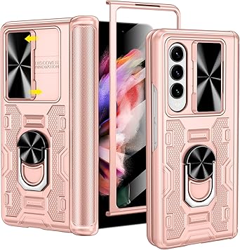 VEGO for Samsung Galaxy Z Fold 3 Case with Stand, Slide Camera Cover & Screen Protector & 360ԍRing Magnetic Kickstand Military Grade Heavy Duty Protective Case for Galaxy Z Fold 3- Rose Gold