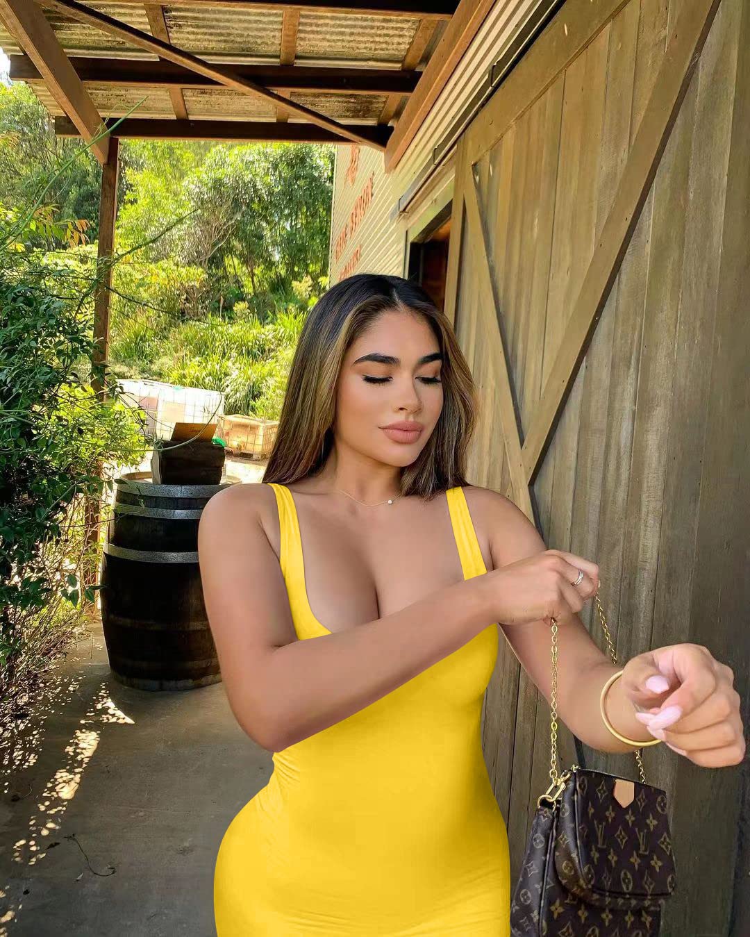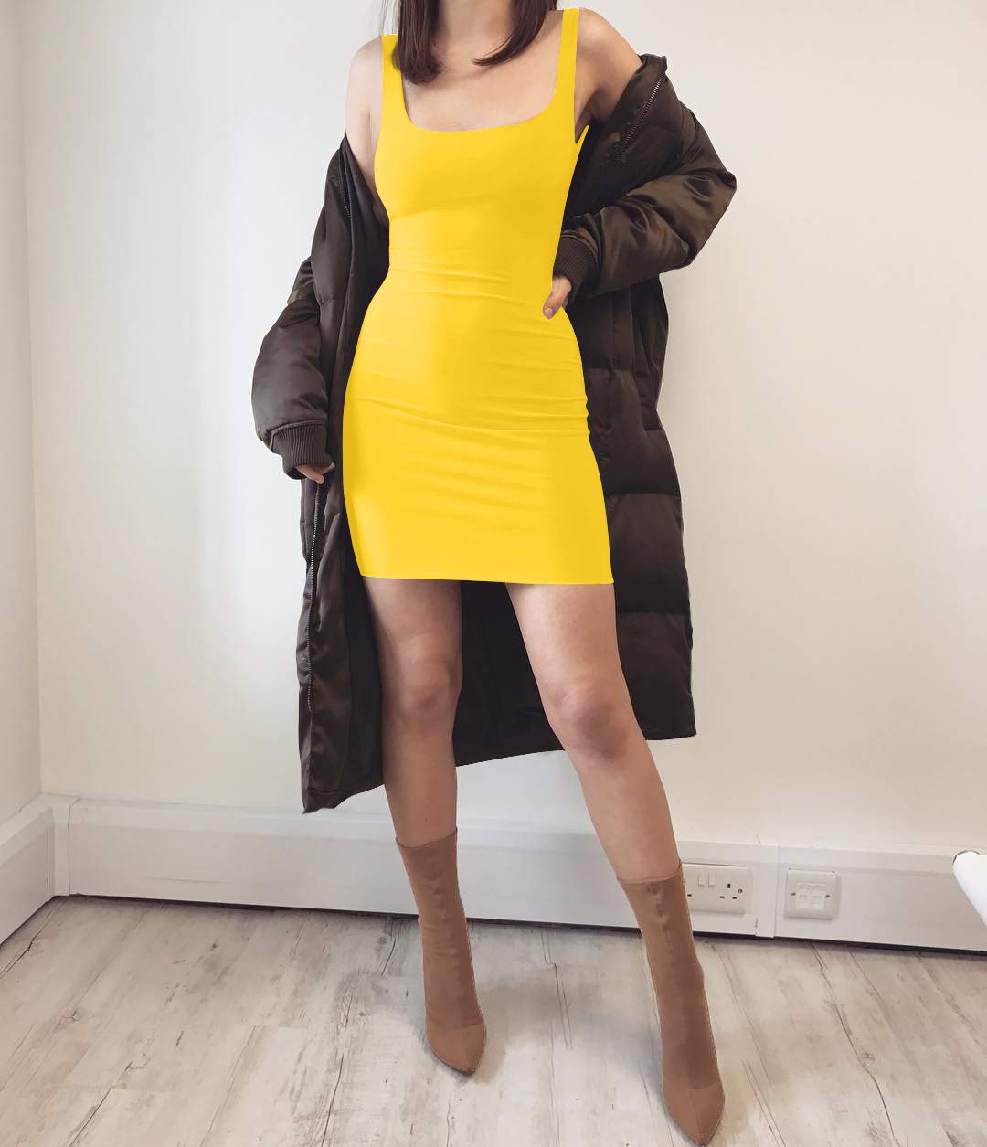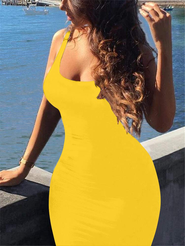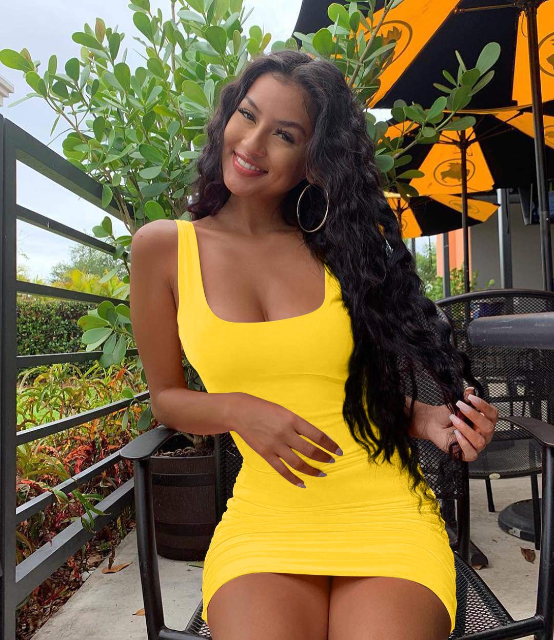 GOBLES Women's Casual Summer Sleeveless Mini Sexy Bodycon Tank Club Dress Yellow