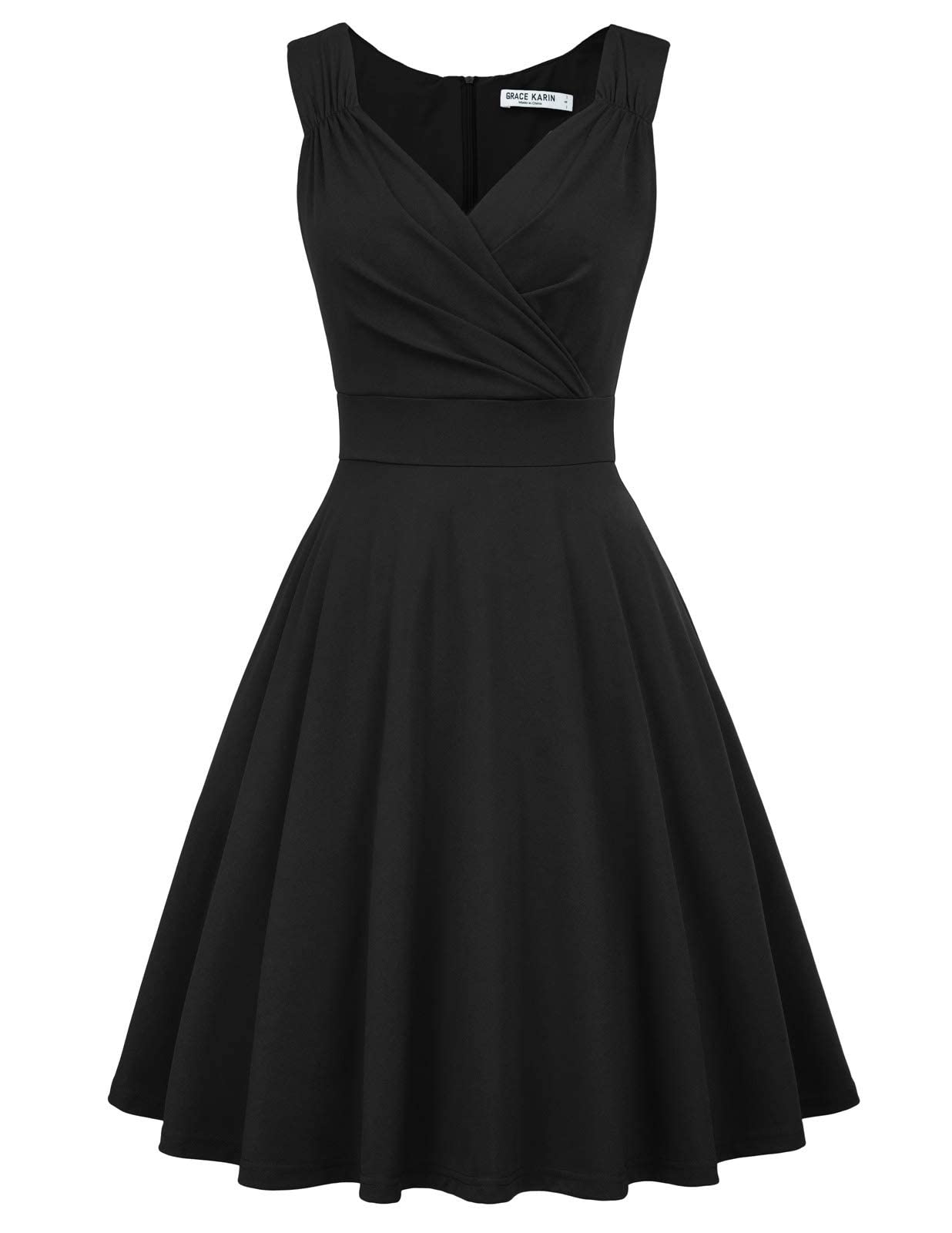 Details: GRACE KARIN Women's Vintage Sleeveless V-Neck Flared A-Line Party Swing Dress
