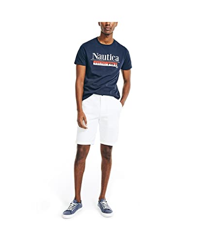Details: A must-have for your warm-weather wardrobe, this stretch-cotton twill Deck short is complete with multiple pockets and Nautica's J-class logo at the back. Flat-front tailoring and trouser pockets keep the look sharp.