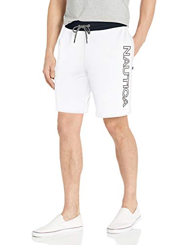 Nautica Men's Fleece Knit Logo Shorts, Bright White, Large