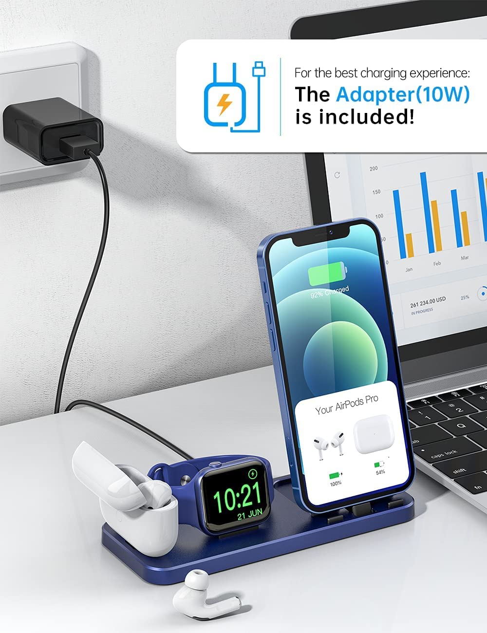 • [What You Get]: Charging Stand*1, Instructions*1, Type-C Cable(38inch)*1, ADAPTER (12W) is INCLUDED, lifetime warranty, and friendly customer service.