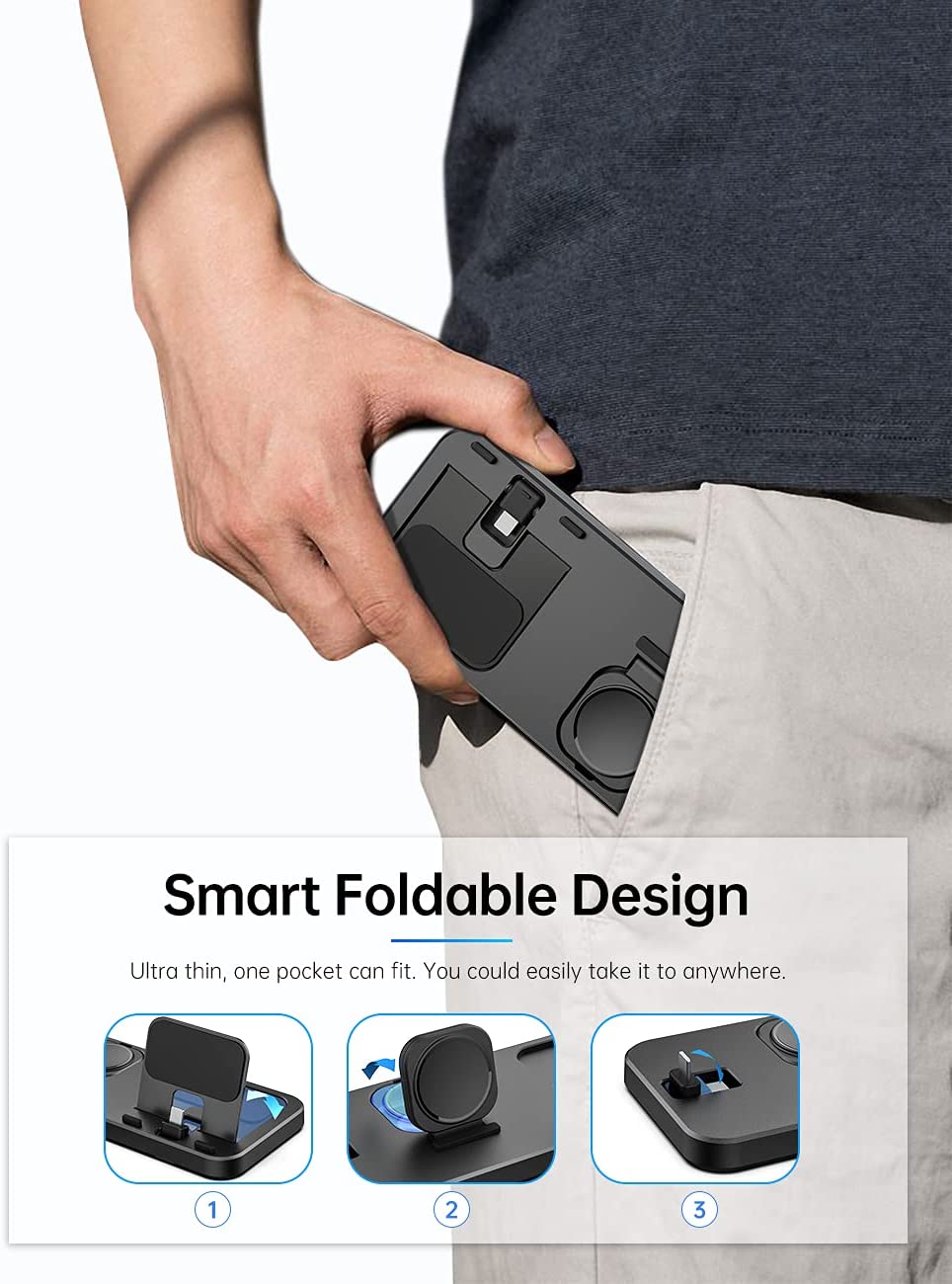 • [Portable & Foldable Design]: Equipped with foldable watch charger and phone AirPods charging support, making it convenient to fit it in the backpack while traveling. Perfect Portable Charger Compatible with iPhone iWatch AirPods to charge anytime anywhere.