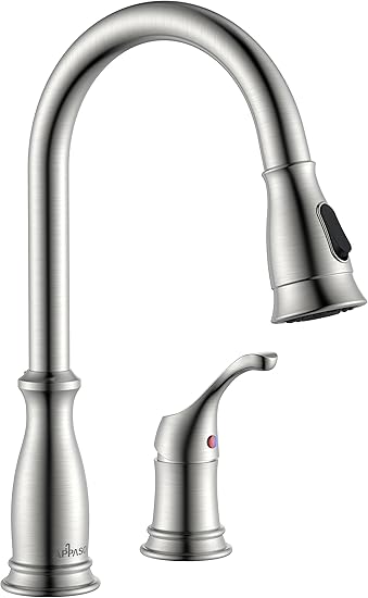 APPASO 2 Hole Kitchen Faucet with Pull Down Sprayer, Stainless Steel Brushed Nickel Commercial Kitchen Sink Faucet with Side Single Handle, APS278BN
