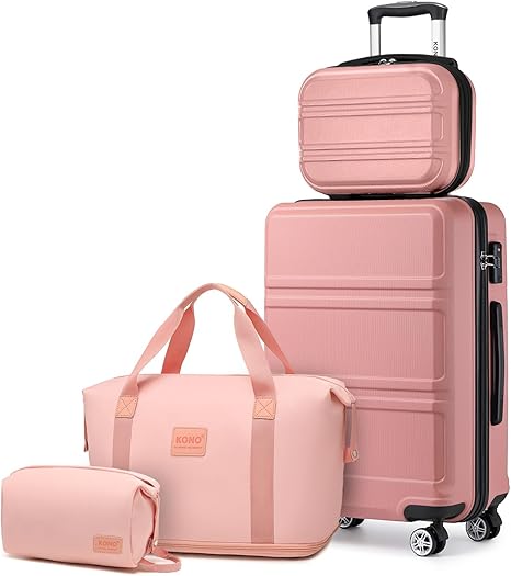Kono Luggage Set 4 Piece Carry On Hardside Luggage with TSA Lock Spinner Wheels Carry On Suitcase Nude/Rose Gold
