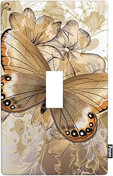 Butterfly Single Toggle Light Switch Cover Gold Butterfly Dancing in The Flowers 1-Gang Toggle Wall Plate Standard Size 4.5" x 2.76" for Teen Boy Girl Room