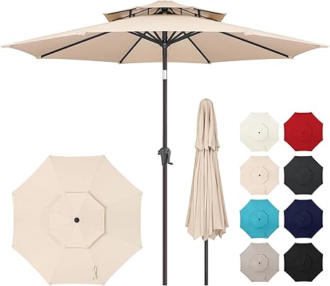 9ft Outdoor Patio Umbrella - 2 Tiers Table Umbrella Waterprool UV Protection, Sombrillas de Patio with Push Button Tilt&Crank, Sun Umbrella for Pool, Porch, Garden, Backyard(Beige)