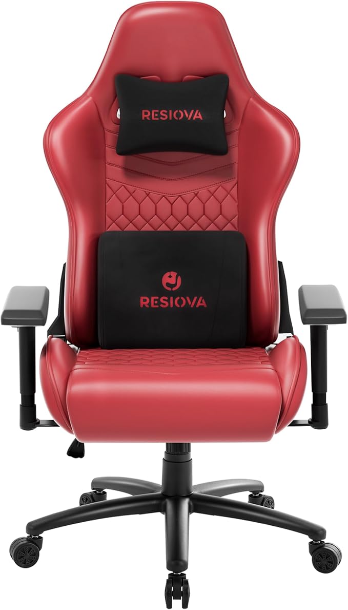 Gaming Chair for Adults, Ergonomic Office Computer Chair Racing Chair, High Back Gamer Chair with Velvet Headrest and Lumbar Support, Faux Leather 350LBS Video Game Chair(RED)