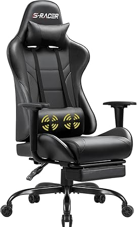 Homall Gaming Chair Massage Computer Office Chair Ergonomic Desk Chair with Footrest Racing Executive Swivel Chair Adjustable Rolling Task Chair (Black)