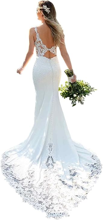 Women's Lace Mermaid Wedding Dresses for Bride 2019 Beach Bridal Gowns Spaghetti Straps