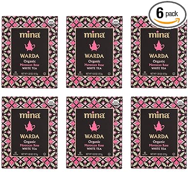 Mina Warda Organic Moroccan Rose White Tea, 15 Biodegradable Sachets (6 Pack) - Rose Tea Bags, White Tea with Moroccan Rose Petals, Organic White Tea Bags, Low Caffeine Tea