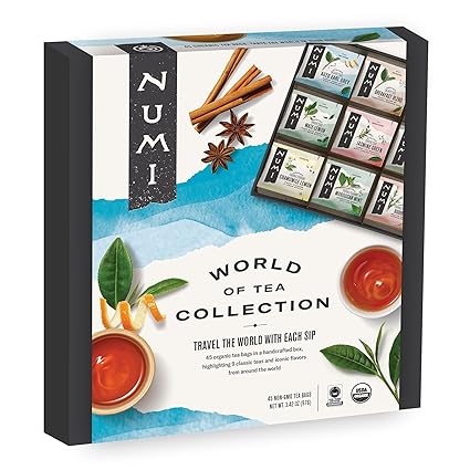 Numi Organic Tea World of Tea Gift Set, 45 Tea Bags, Fair Trade Black, Green, Mat’©, Rooibos & Herbal Tea Sampler