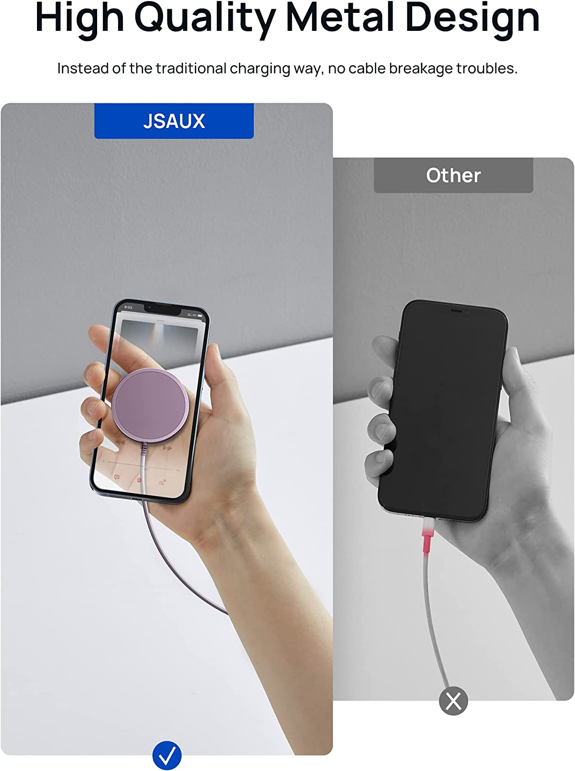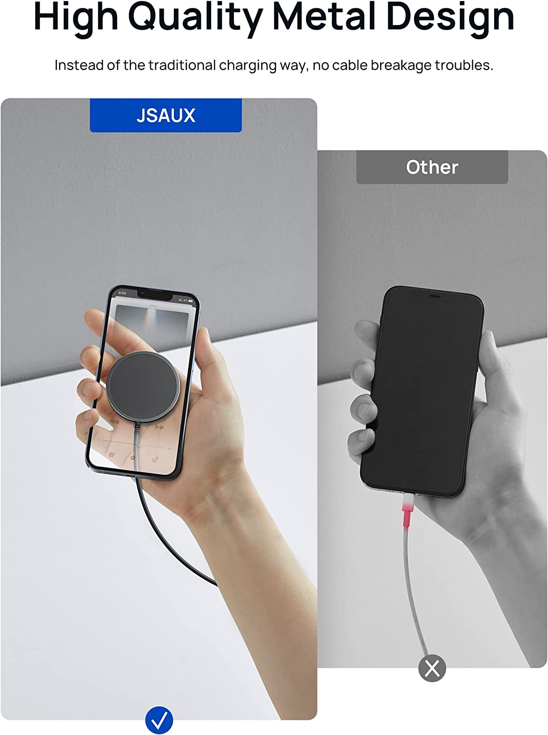 • 💗【Intelligent Protection】As with MagSafe Charger, your iPhone or JSAUX magnetic wireless charger might get slightly warmer while your iPhone charges. To extend the lifespan of your battery, if the battery gets too warm, software might limit charging above 80 percent.