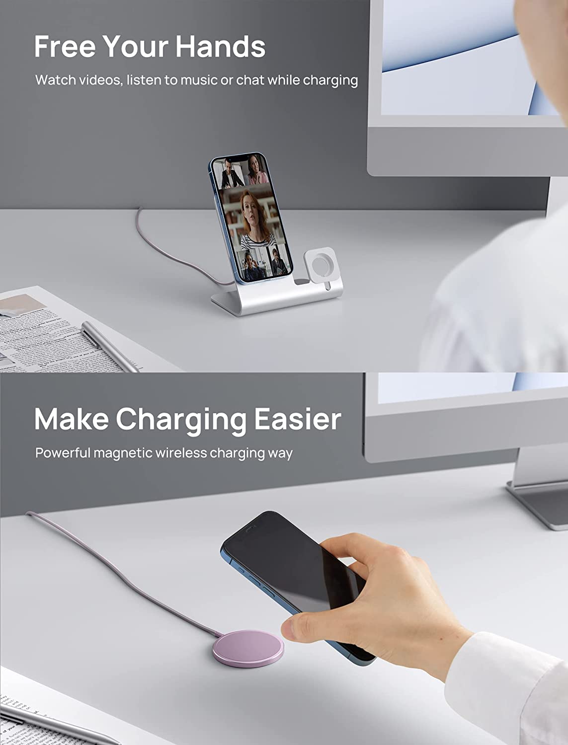 • 🔋【Perfect Alignment & Easy charging at night】In the dark of bedroom, never worry about how difficult to find the charging port. The magnetic wireless charging pad let the perfectly aligned magnets attach to your iPhone 14/13/12, whether you are working, watching videos, listening to music, or chatting.