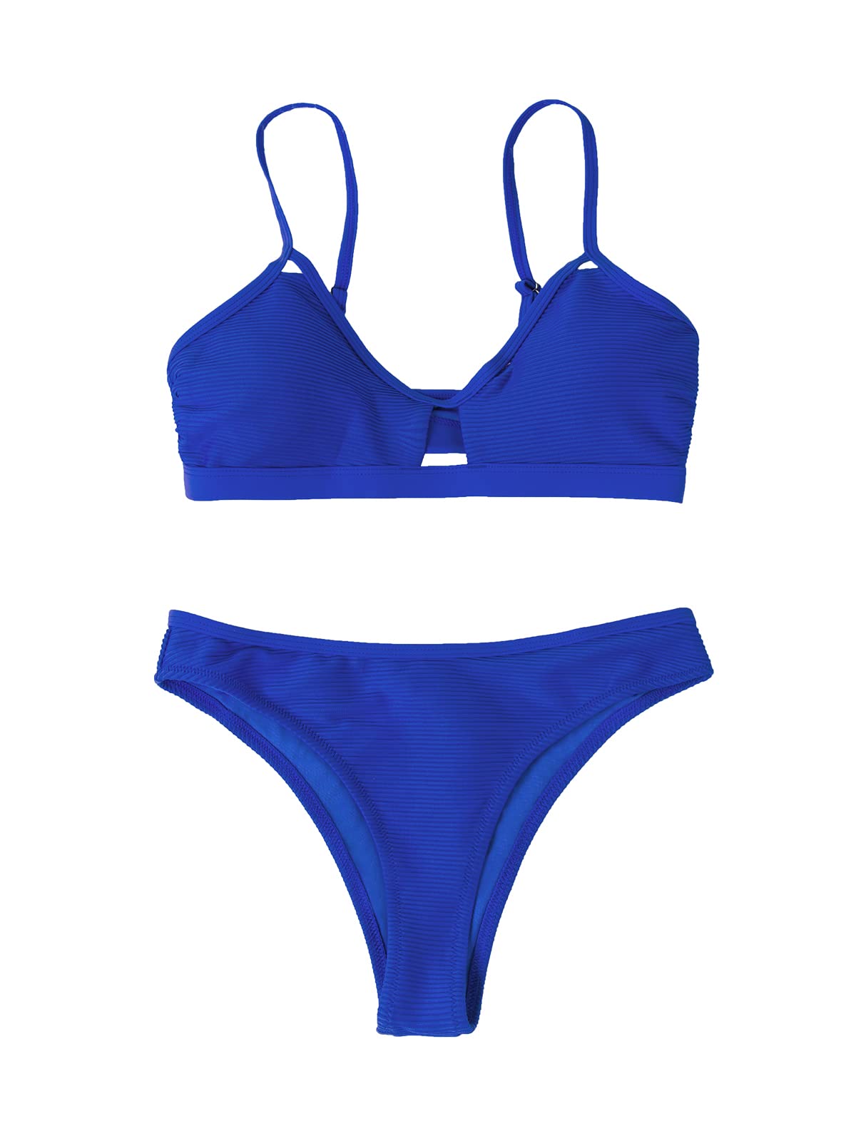 • Design: This Two Pieces Swimsuit for Women Cutout Bikini Set Features Hollow Out and High Cut. Cheeky Mid Waist And Spaghetti Straps Give You Support. Special Fabric Rib Can Give Your Comfortable Feeling.