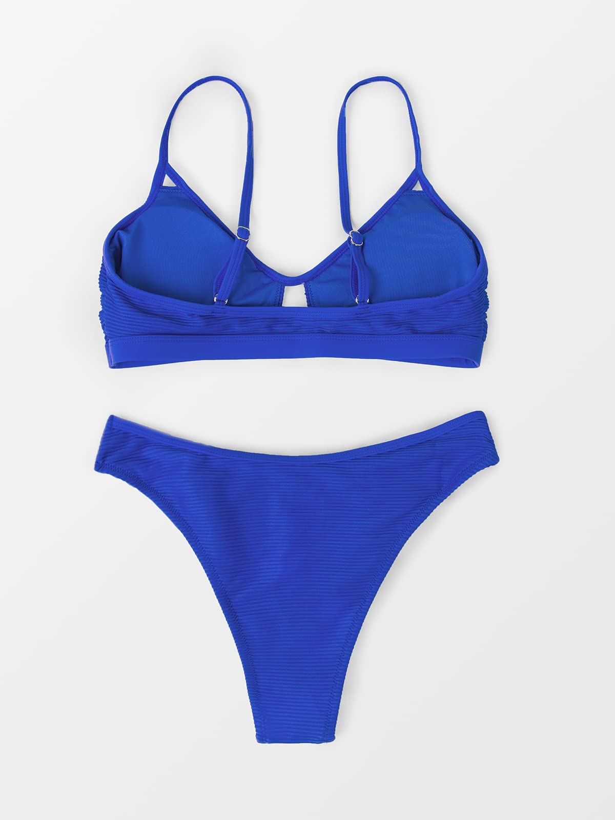 CUPSHE Bikini Set for Women Bathing Suit Mid Waist Cutout High Cut Spaghetti Straps Cheeky Rib, L
