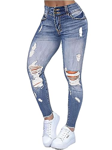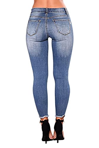 Flamingals Women's Distressed Raw Hem Jeans Low Waist Casual Pants Blue S