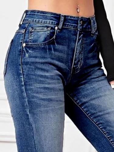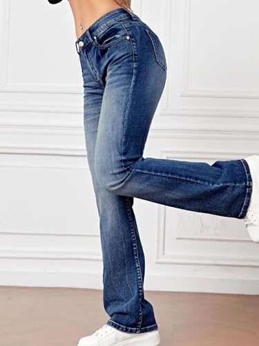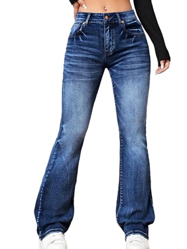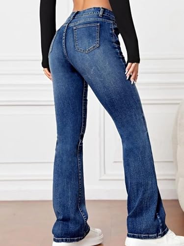 Flamingals Women's Flare Leg Jeans for Women High Waist Bleach Wash Bell Bottom Jeans Mid Blue M