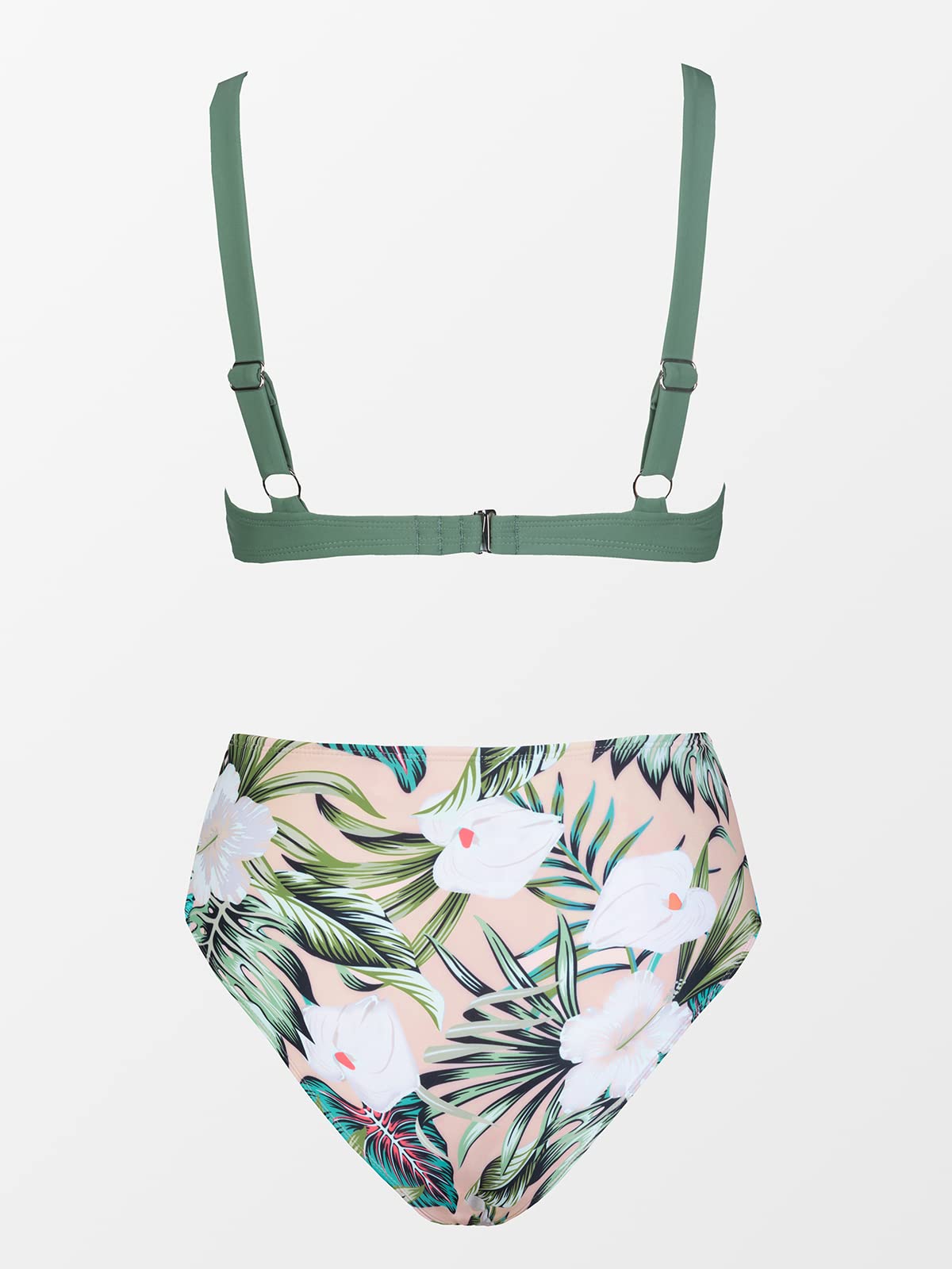 • Design: Freshen up Your Beachside Look with Triangle Floral Bikini Set. The Bikini Top Features Scalloped V Neck with Adjustable Wide Straps, Matching High Waisted Ruched Bikini Bottom for More Coverage. About Cup Style: with Removable Pads