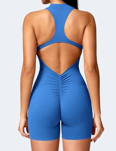 YEOREO Jumpsuits for Women Zip Up Workout Backless Shapewear Tummy Control Sleeveless Emma Sexy Yoga Bodysuits Bright Blue M