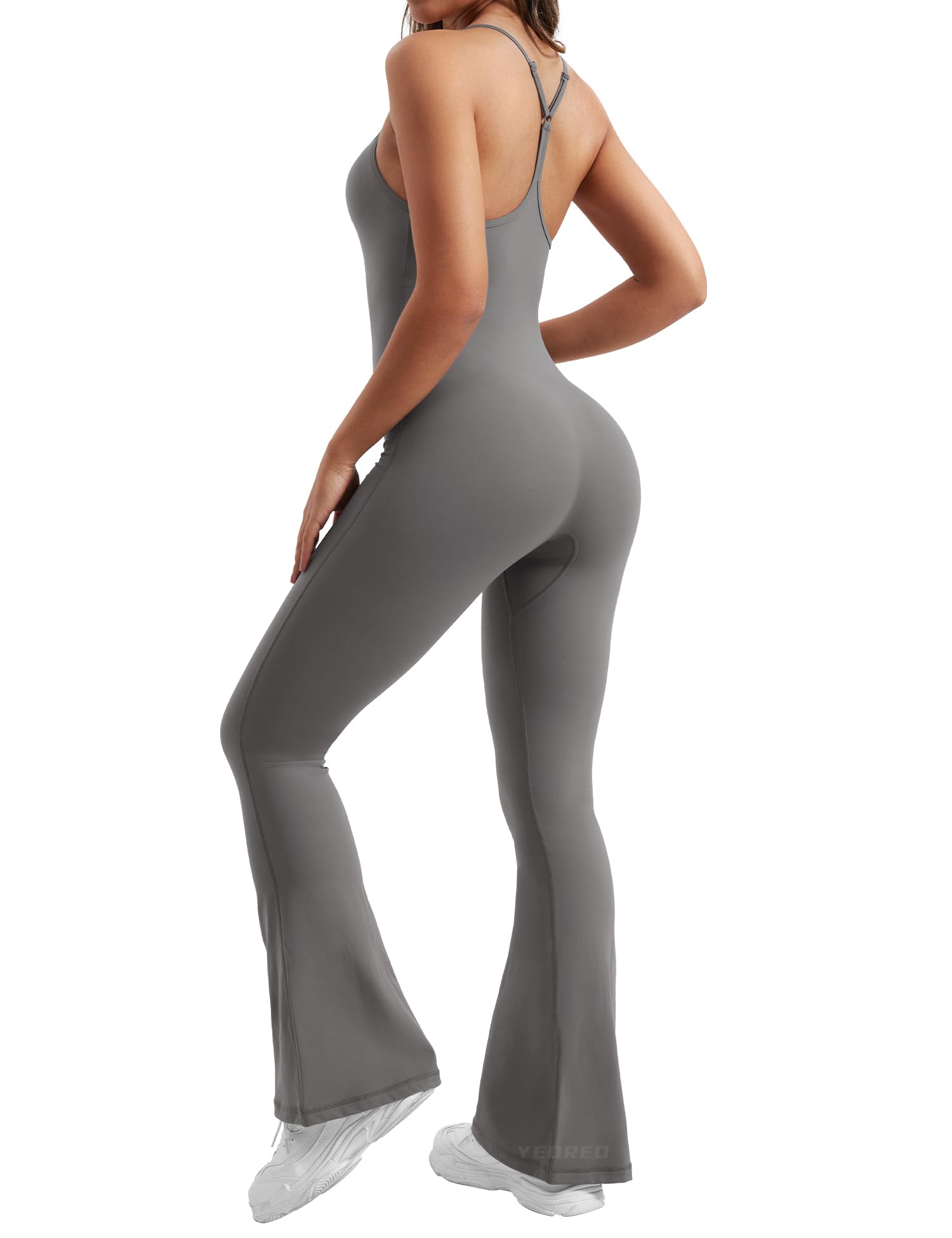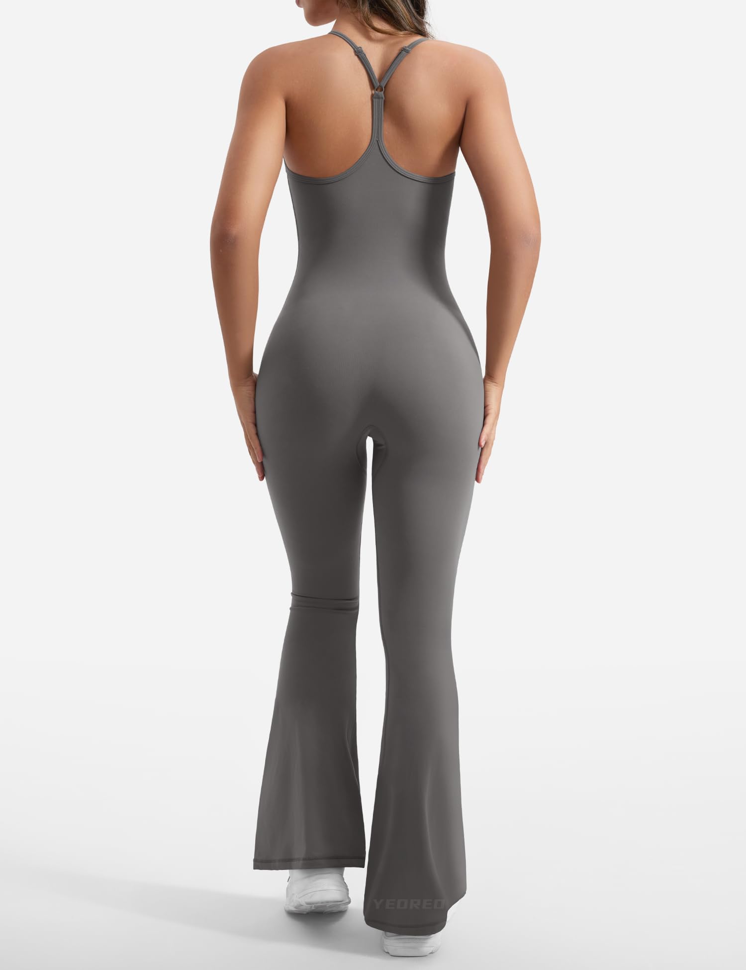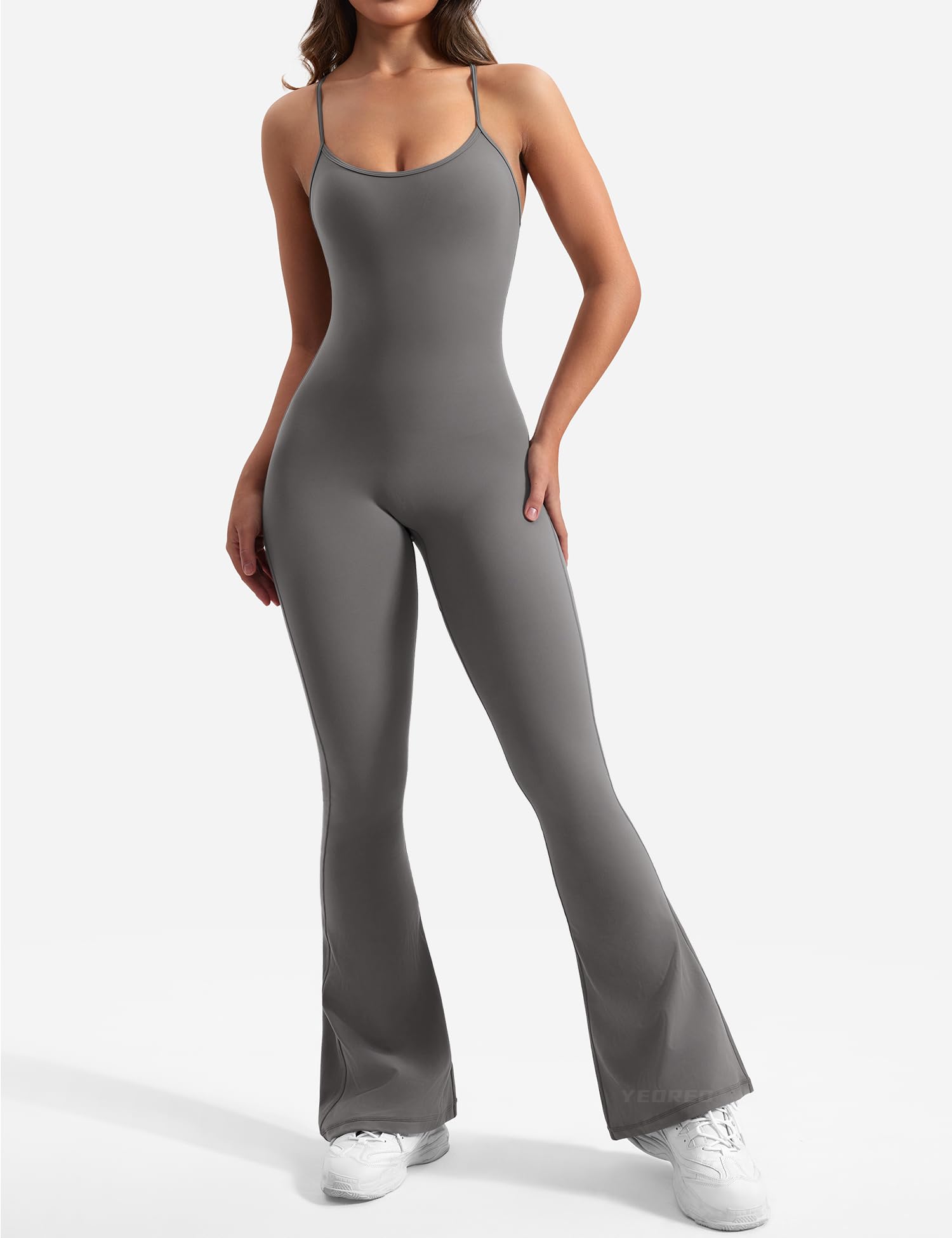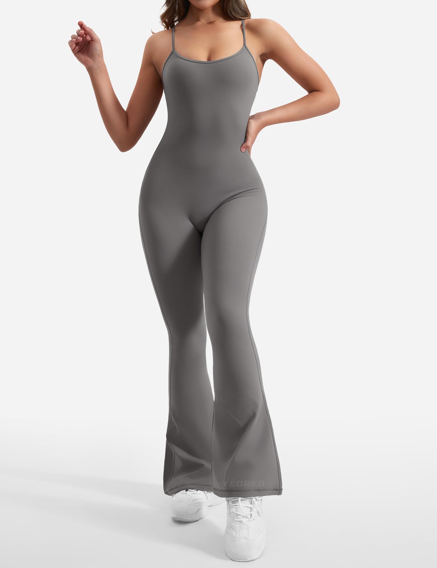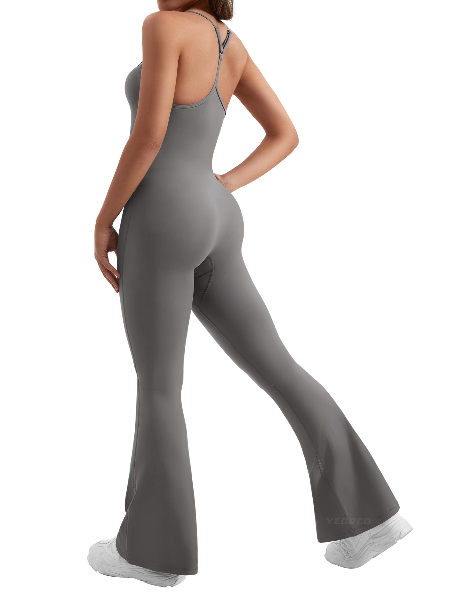 YEOREO One Piece Jumpsuit for Women 31" Inseam Vais Sleeveless Sexy Y Back Bodycon Flare Leg Full Length Romper Playsuits Grey M