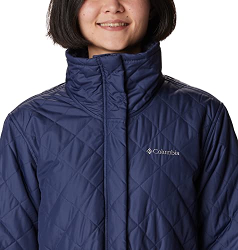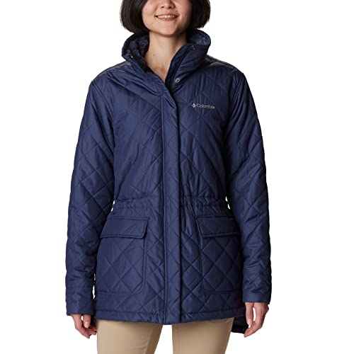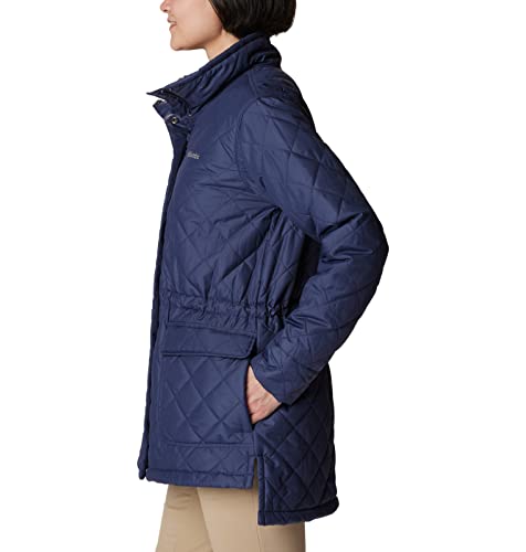 Details: Cozy from top to bottom, this quilted coat combines lightweight insulation and a plush fleece lining. The result is a stylishly warm jacket, featuring an exaggerated collar and drop tail for even more coverage from the cold. The water-resistant exterior repels moisture, while thoughtful touches like a drawcord adjustable waist and dual hand pockets provide added utility. Columbia offers this jacket in multiple colors and sizes. Extended sizing available. Regular Fit. To ensure the size you choose is right, utilize our sizing chart and the following measurement instructions: For the sleeves, start at the center back of the neck and measure across the shoulder and down to the sleeve. If you come up with a partial number, round up to the next even number. For the chest, measure at the fullest part of the chest, under the armpits, and over the shoulder blades, keeping the tape measure firm and level.
