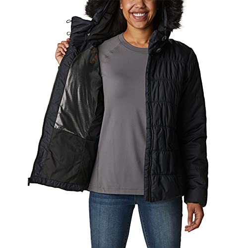 Details: Our locally inspired Sparks Lake Winter Jacket combines stylish looks with functional technology to keep you warm and dry. Made for women, this modern jacket features our exclusive Omni-HEAT™ reflective heat system, combined with warm synthetic down, and stylish trim… you'll actually enjoy heading out into the harsh elements with this jacket. The quality assembly, construction, and stitching, infused into this jacket will instill a sense of confidence when the weather turns super blustery and cold. This versatile parka style coat, comes with a removable and conveniently foldable faux fur trim, so you can tailor your warmth to any amount of wind-chill. Elastic cuffs and zippered side pockets keep your small items secure (including your hands). Offered in several stylish colors and sizes. Available in extended sizing. Regular Fit. To ensure the size you choose is right, utilize our sizing chart and the following measurement instructions: For the sleeves, start at the center back of your neck and measure across the shoulder and down to the sleeve. If you come up with a partial number, round up to the next even number. For the chest, measure at the fullest part of the chest, under the armpits and over the shoulder blades, keeping the tape measure firm and level. Imported. Made from 100% polyester. Zippered closure. Machine Wash.