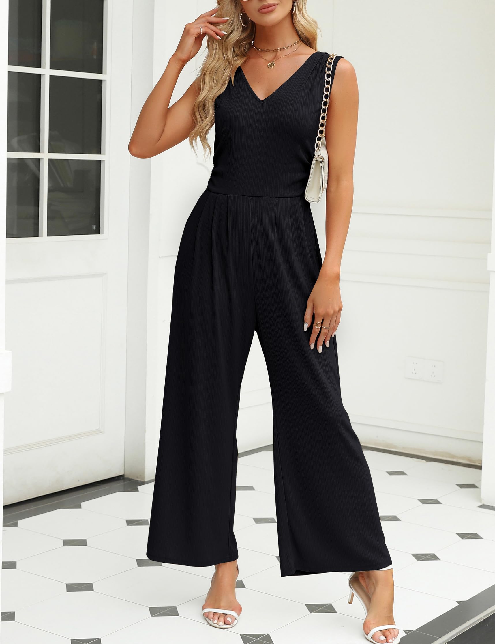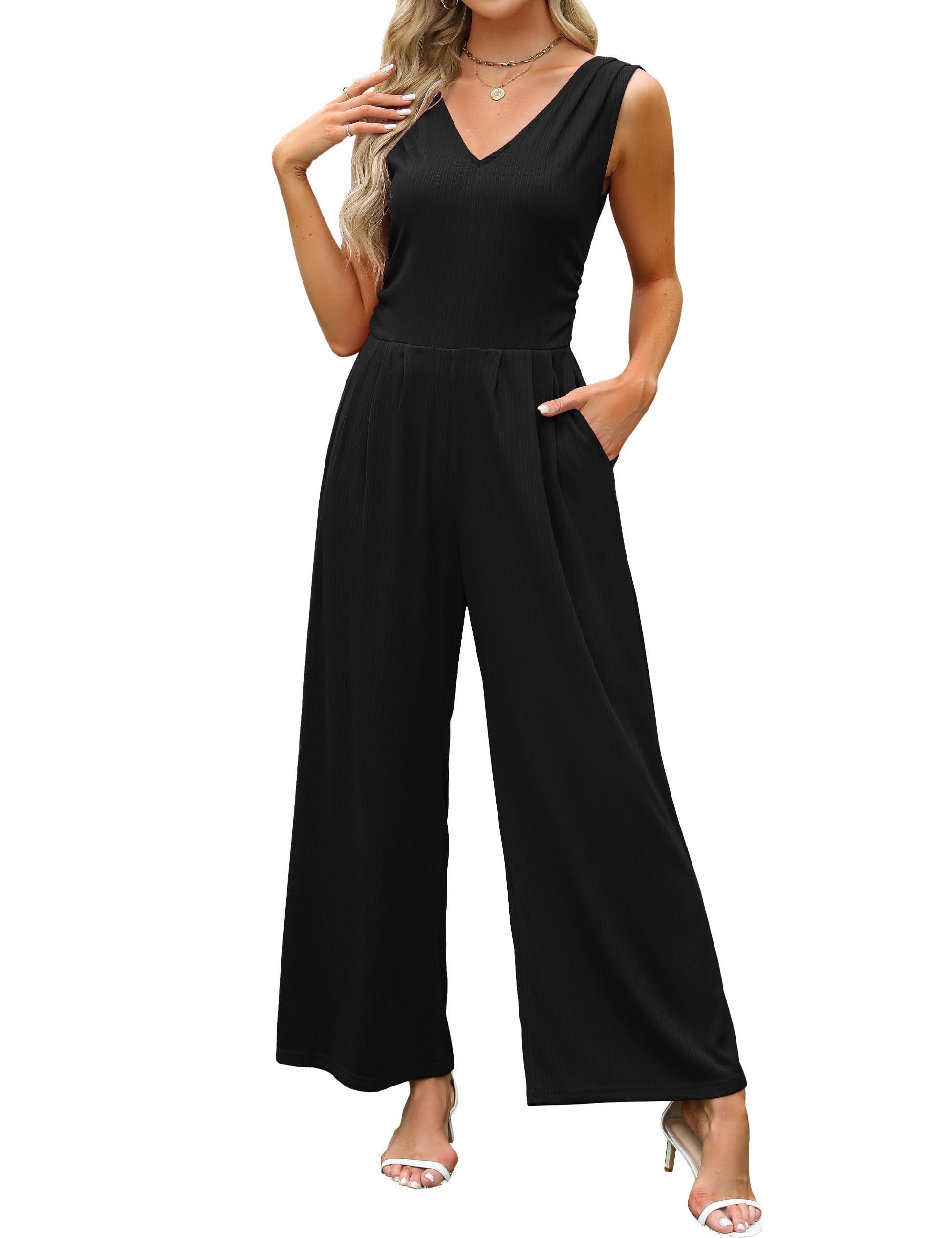 BMJL Womens Dressy Jumpsuits Sleeveless Wide Leg Pants Romper Casual V Neck One Piece Outfit with Pockets 2024(Black, XL)