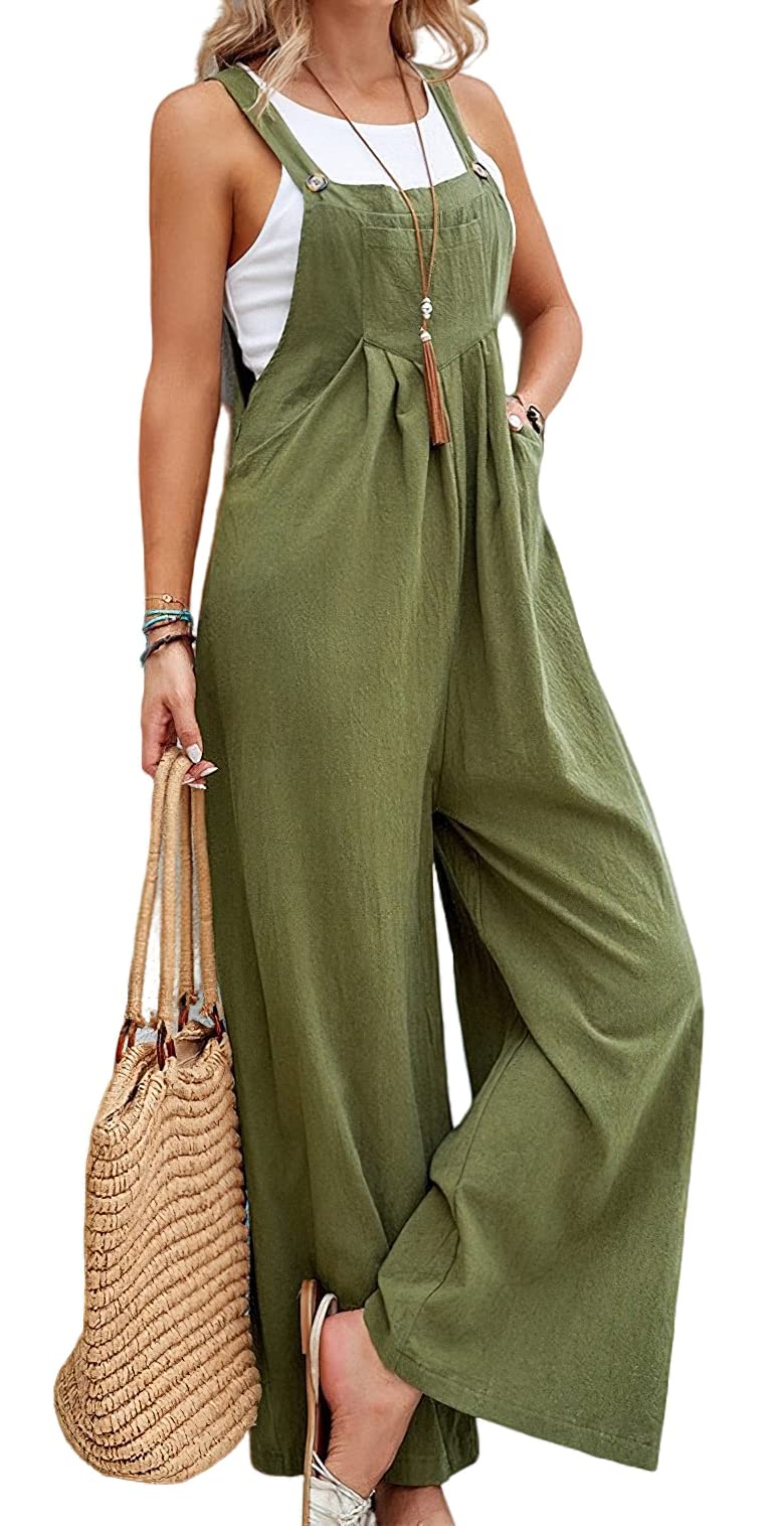 loveimgs Women's Summer Sleeveless Straps Bib Overalls Wide Leg Jumpsuits Long Pants Rompers with Pockets (Medium, Army Green)