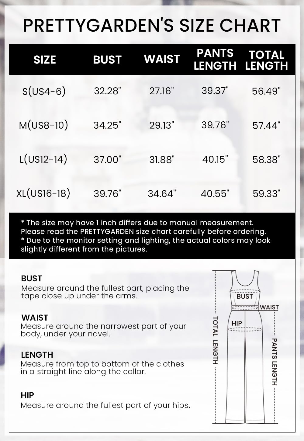 • Size Attention: S=US 4-6,M=US 8-10,L=US 12-14,XL=US 16-18. HIGH QUALITY FABRIC: This Casual Jumpsuits Is Made Of Soft, Lightweight Fabric, Stretchy, Comfortable And Breathable. Not See Through, A Must-Have Jumpsuit For Every Fashion Woman