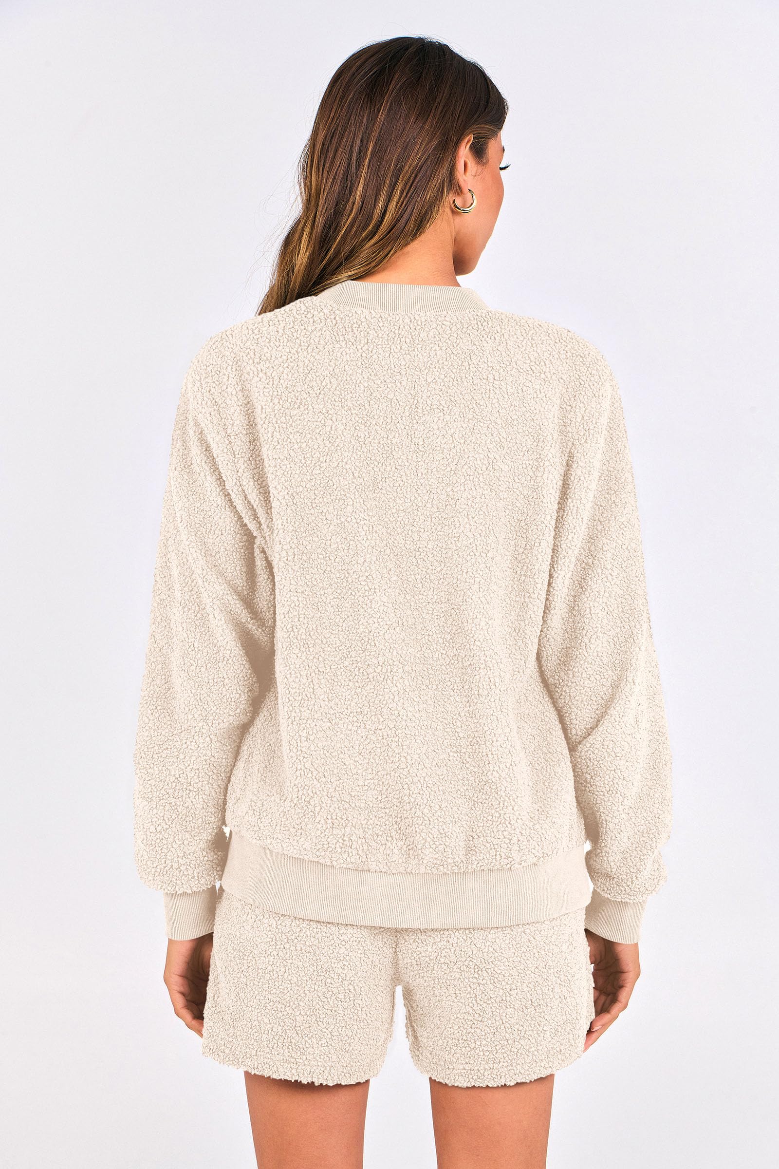 • TRENDY FEATURES: This 2 Piece Set Includes A Long Sleeve Jackets And Shorts, Perfect For Mixing And Matching Or Wearing Together As A Complete Outfit. Easily Put On And Take Off This Fleece Jacket Tops With Its Full Zip Design. Conveniently Store Your Essentials With The Handy Pocket Included In This Sweatsuit Sets. Made From A Fuzzy And Cuddly Material, Women Tracksuit Set Provides Ultimate Comfort And Snugness To Keep You Feeling Snug All Day Long.