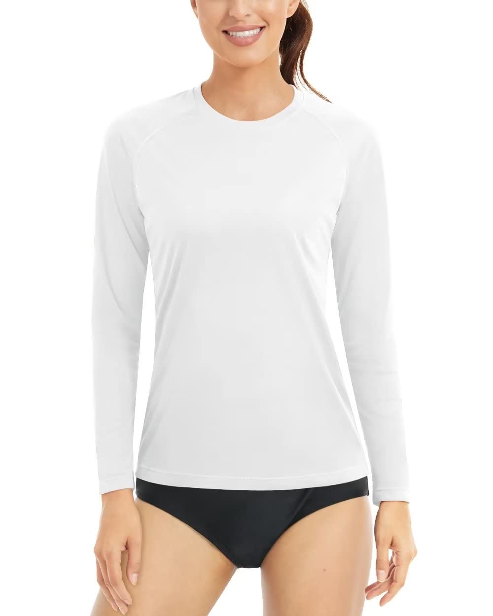 Boladeci Womens Swim Shirts Long Sleeve Quick Dry Rashguard UPF 50+ UV Protection Sun Shirt Outdoor Workout Sport SPF Tops T-Shirts White S