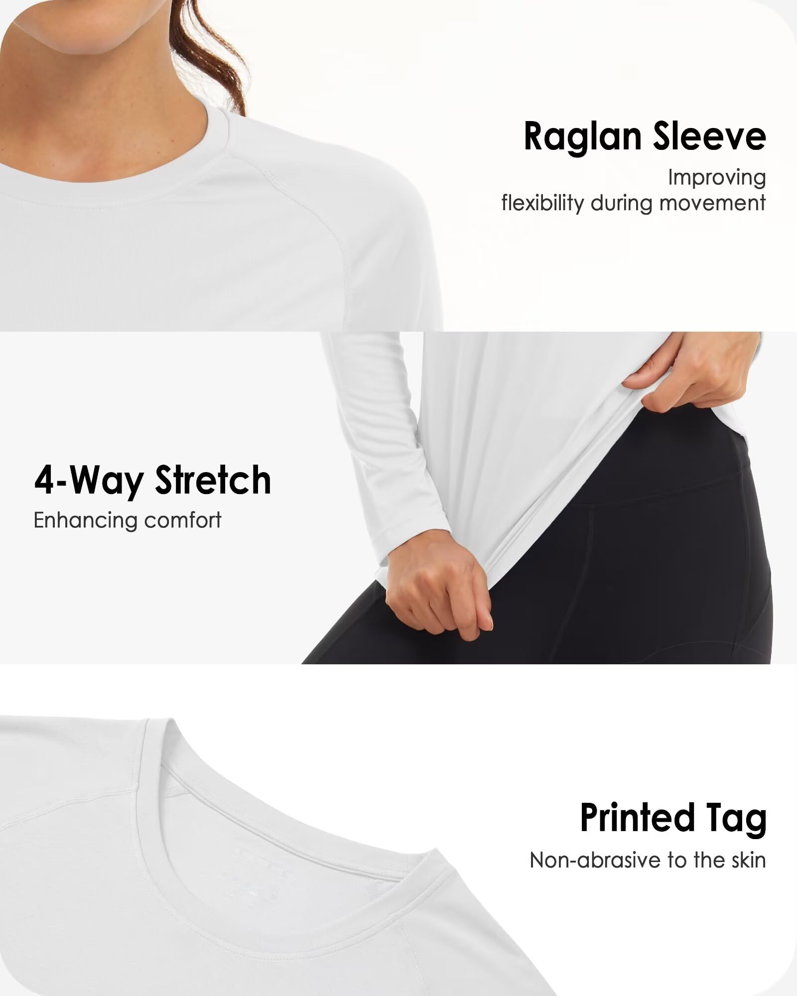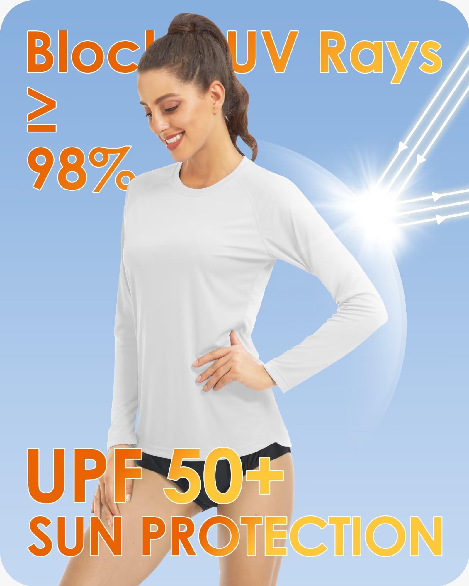 • [UPF 50+ Sun Protection] These womens long sleeve t-shirts protect you from the damage of UV without applying sunscreen all over your body (UPF 50+ means they can blocks 98% of UV rays). Keep you away from skin cancer and sunburn