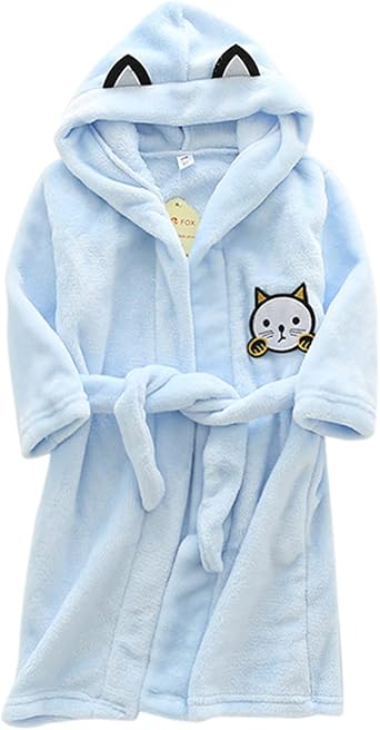 Boys Girls Fleece Bathrobe, Hooded Toddler Soft Fuzzy Robe for Baby Boys Girls•_ÎLong Sleeves Sleepwear